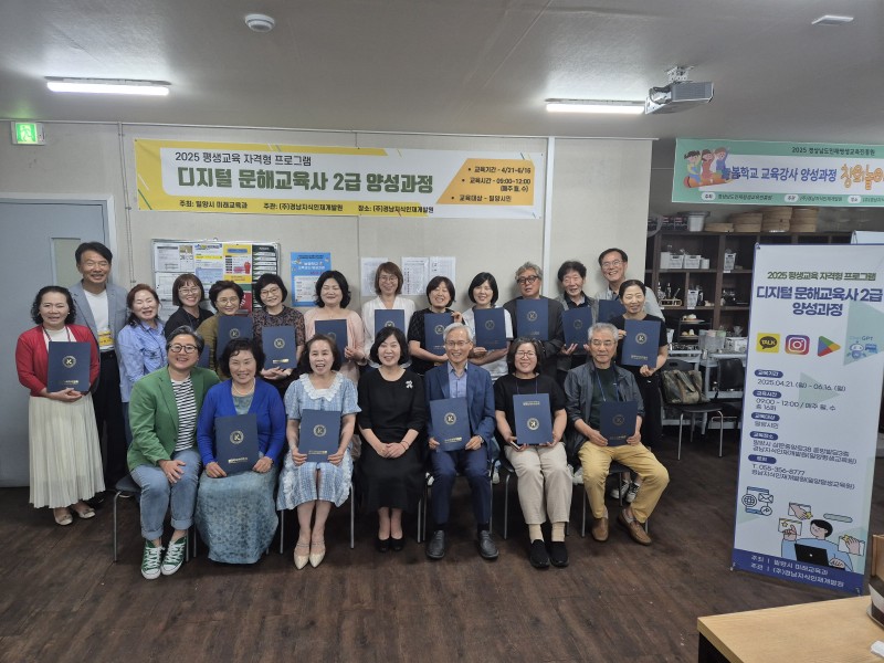 디지털 문해교육사 2급 양성과정 수료식 개최 및 요양원 봉사활동 진행 최근 '디지털 문해교육사 2급 양성과정' 수료식을 열고, 지역 주민 20여 명에게 수료증을 전달했다. 이번 교육은 고령층의 디지털 격차 해소를 돕기 위한 전문 인력 양성 프로그램으로, 수료자들은 향후 디지털…