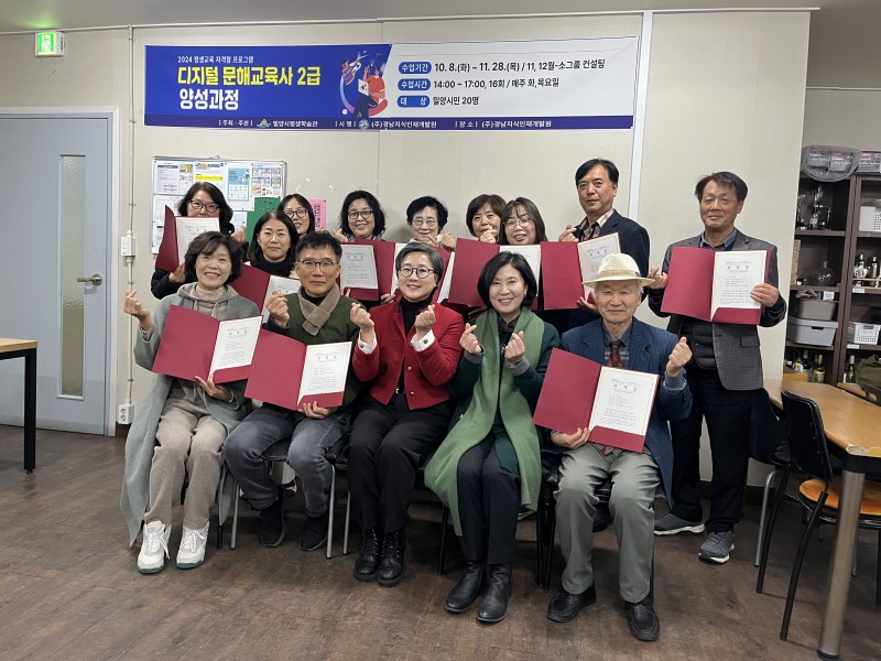 함께 성장하는 디지털 문해교육사를 꿈꾸며 경남지식인재개발원 밀양평생교육원은 4월 21일 2025년 평생교육 자격형 프로그램인 <디지털 문해교육사 2급 양성과정>교육을 시작하였다. 노년층을 포함한 적잖은 중장년층은 스마트폰 속 편리한 앱활용에 무지하고, 키오스같…