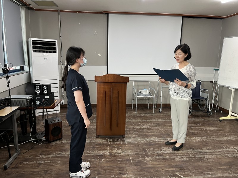 지난 8월 27일 화요일 밀양간호학원에서 간호조무사 27기 수료식이 있었다. 교육원에서는 훈련생 10명 모두에게 지속적인 관리와 독려를 하며 훈련생 모두 전원합격 할 수 있도록 노력하고 있다. 간호조무사 자격 취득 후에는 종합병원 및 병원, 치과병원, 한방병원, 의원, …