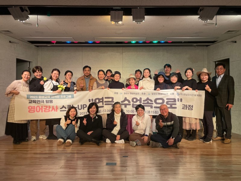 23년 9월 11일 2023년 평생교육 자격형 프로그램 교육연극활용 [영어강사 스킬-UP "연극,수업속으로"] 과정이 개강을 하였다. 9월 11일부터 12월 11일까지 [영어강사 스킬-UP "연극,수업속으로"] 과정 수업이 진행되며 전문 연극강사를 통해 연극 기술을 습득하여 영어강사들의 연극적 기술 …