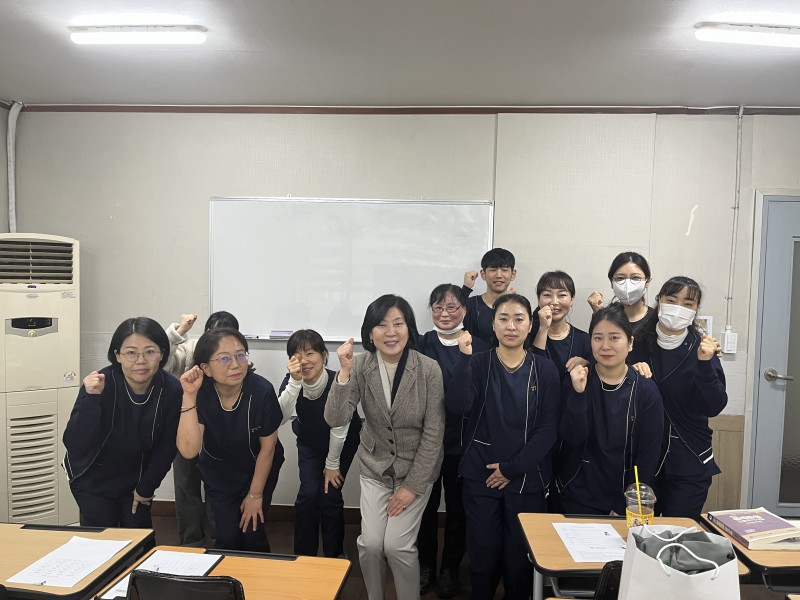 지난 02월 20일 밀양간호학원 주간 26기 13명이 2023년 04월 10일부터 2024년 02월 19일까지의 총 1년 과정을 이수하여 수료하였다. 수료생 13명은 03월 09일 시험을 앞두고 있다. 교육원에서는 훈련생 13명 모두에게 지속적인 관리와 독려를 하며 훈련생 모두 전원합격 할 수…