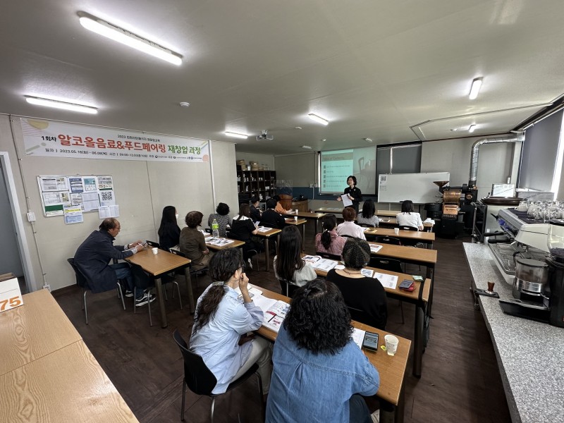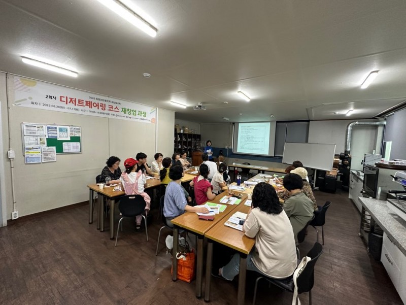 지난 6월 20일에 개강한 2023 희망리턴패키지 재창업교육 2회차 디저트페어링 수업이 7월 11일 19명이 수료하였다. 디저트페어링 수업은 자기 자신에게 만족을 줄 수 있는 것에 투자하는 소비성향의 변화에 맞춰 레스플레이션 , 외식의 양극화, 가치소비, 미식플렉스, 인증소장욕구 등의 23년도 키…