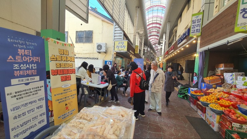 2023년 10월 14일 토요일 밀양아리랑시장 우리은행 골목에서 무료 뷰티체험행사가 진행되었다. 이 행사는 밀양시 원도심 상가거리 활성화를 위한 "뷰티스토어 거리" 조성을 위해 진행되었으며 체험은 네일(기본케어)체험, 속눈썹 연장 체험, 퍼스널컬러 진단 체험, 헤어컬러피스 체…